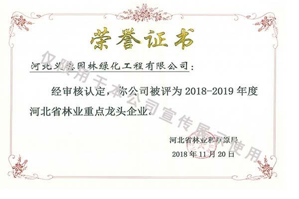 2018-2019年度河北省林業(yè)重點(diǎn)龍頭
